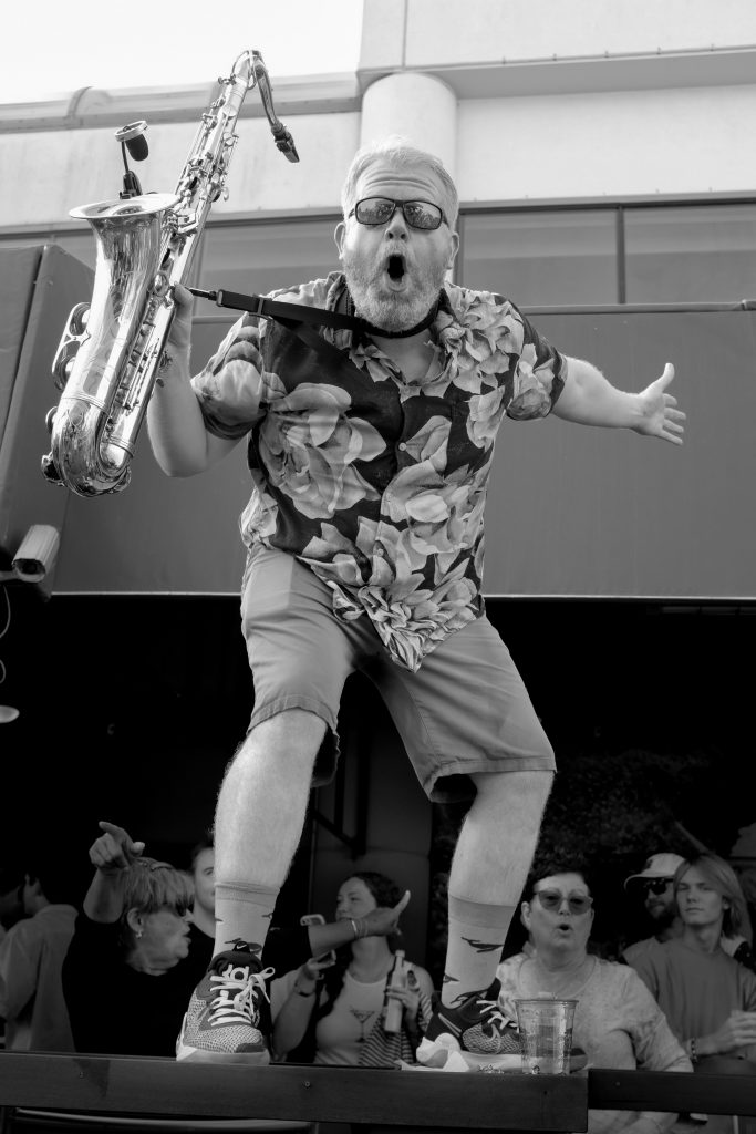 Billa (Saxophone) also known as the life of the party can rarely be seen on the stage. Whether he is running around with people dancing, or jumping on top of the bar to jam out he is rarely stationary. Whenever Billa is not playing the sax you can catch him rapping and singing some songs that make the crowd go wild!