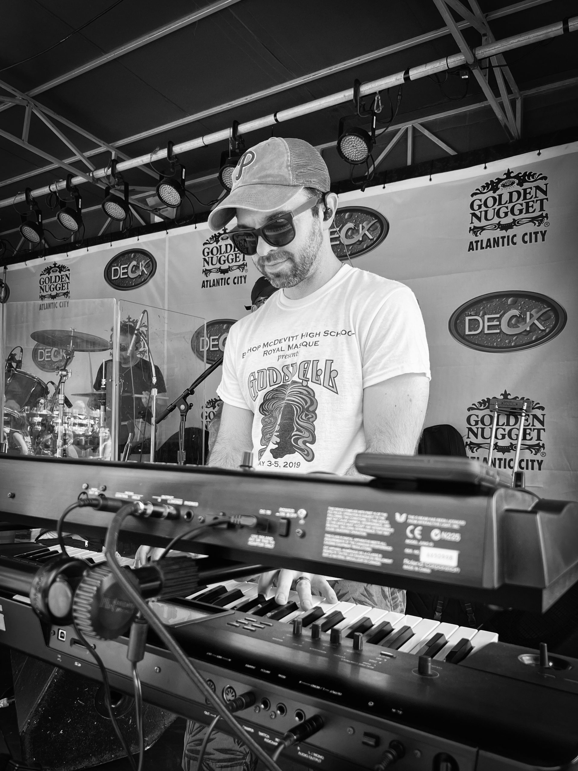 Stefan (Guitar) is one of the most talented/versatile guitar players in the business! His ability to transition from rock to pop to funk and ballads is remarkable. Always moving and smiling, Stef clearly loves what he’s doing and it shows!